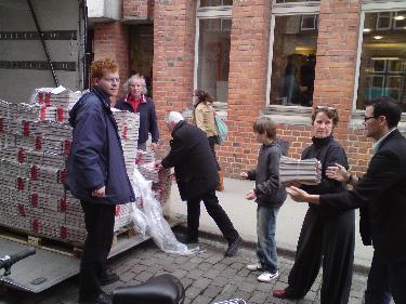 Die Linke startet mit dem Bündnis „Nein-zum-Flughafenausbau“ in die heiße Phase. Nun sind 100000 Zeitungen eingetroffen, dass entspricht 3 Tonnen Infomaterial auf 5 Paletten.