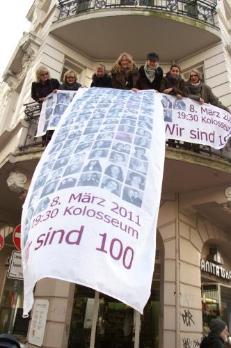 Am 8. März 2011 wird der 100. Internationale Frauentag begangen – in Lübeck mit einer großen Festveranstaltung mit dem selbstbewußten Titel „Wir sind 100!“  Aus diesem Anlaß wurden auch 100 Fotos von Lübeckerinnen von der Fotografin Anja Döhring gemacht – die auf einem Flyer und Plakaten gedruckt wurden…… und sie werden auf Fahnen und Bannern vor dem Kolosseum Veranstaltungsort), in der Hüxstraße und an anderen Plätzen in der Lübecker Innenstadt ab Donnerstag zu sehen sein.  Ein Banner wurde gestern schon in der Königstraße 91 ausgerollt – hier-luebeck.de war dabei.