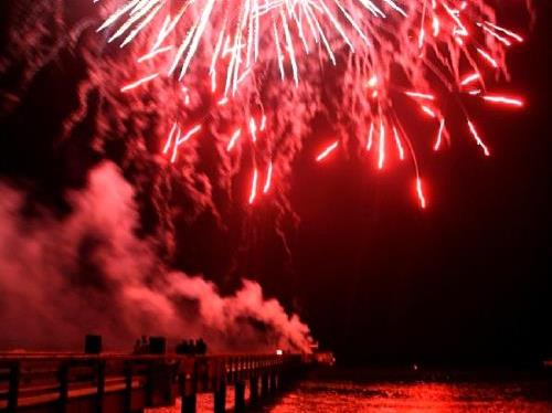 Bildbeschreibung: Feuerwerk über Schönberger Seebrücke – Copyright: Tourist-Service Schönberg
