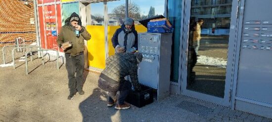 (TBF) Wolfgang Freywald, Vorsitzender der Fides Humanitas Stiftung: „Bei 14 Grad Kälte war es heute am Morgen in Lübeck-Moisling nähe Bäckerei Knaack kein Vergnügen, mit anzusehen, wie die bibbernden armen Leute vor der Tür des Ärztehauses bis 10.30 Uhr warten mußten, bis sie dort in den 1. Stock Einlaß bekamen und waren hoch erfreut, etwas zu Essen und zu Trinken zu bekommen! Wolfgang Freywald: „Hier in Moisling ist es anders als bei den wohnungs- und obdachlosen Menschen am Klingenberg: Ich freue mich jedesmal auf die dankbaren Leute an der Methadon-Ausgabestelle, ihnen`Sandwich- & Wasser zu geben und rief zu ihnen, ich habe was für euch.“