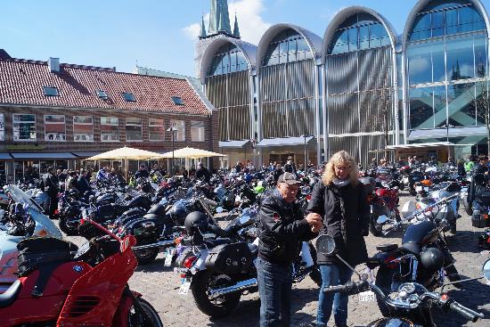 Als der Gottesdienst zuende war, haben sich wieder alle Biker an Ihren Motorrädern versammelt und warteten auf die Ausfahrt zum Dekra Gelände im Hutmacherring.