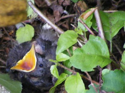 Foto: TBF/Wolfgang Freywald – Die Natur ist in diesem Jahr spät dran, obwohl es heute schön warm ist. Drossel, Amsel Fink und Star ziehen nun ihre Brut auf und das kleine Vögelchen von gestern ist nun aus dem Nest gefallen. Wir haben das Nest auf der Terrasse ein wenig verrückt; kein Problem, die Mutter versorgt ihr Junges weiter.