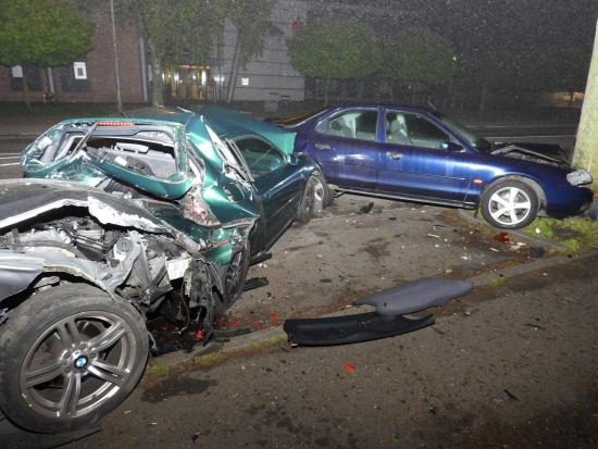 Text und Fotos: TBF/Holger Kröger – 19-Jähriger schrottet betrunken Sonntagmorgen in der Ziegelstrasse drei Autos · Der Junge Mann hatte sein Fahrzeug nicht mehr unter Kontrolle und fuhr drei Autos schrottreif, zerstörte ein Fußgängerleitgitter und beschädigte einen Baum. Eine Bilanz, die erschreckt!Der Betrunkene raste durch Lübeck in Richtung Buntekuhweg und kam mit seinem Auto in Höhe der Bushaltestelle Beethovenstraße in einer Kurve von der Fahrbahn ab. Dabei überfuhr er das neben der Bushaltestelle angebrachte Fußgängergitter, bevor er ungebremst in einen auf dem Parkstreifen abgestellten Audi krachte. Der Aufprall war so stark, dass der Audi auf einen vor ihm stehenden Ford aus dem Kreis Ostholstein krachte und gegen einen Baum schleuderte.