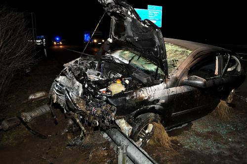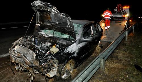 20-Jähriger musste Tier ausweichen: PKW schleudert von Autobahn und fängt Feuer