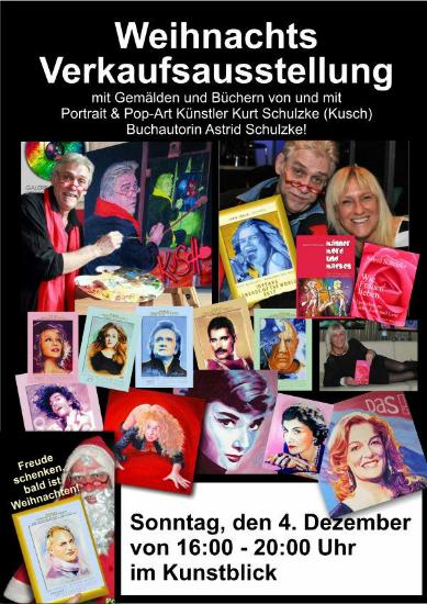 Fotos: TBF/Kasnitz: Text: Kurt Schulzke – Persönliche Einladung in der Vorweihnachtszeit! Zur Verkaufsausstellung mit Gemälden von und mit Portrait & Pop-Art Künstler Kurt Schulzke (Kusch)! Die umfangreiche Gemäldeschau zeigt Werke von Kurt Schulzke. Gezeigt und angeboten werden Acryl/Öl und Aquarellgemälde der letzten 10 Jahre!