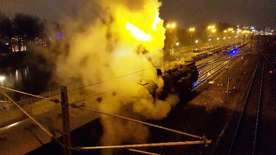 dampflok-4Text und Fotos: TBF/Holger Kröger – Lübeck: Eine Dampflokmotive sorgte vor kurzem auf der Marienbrücke für viel Qualm. Einige Autofahrer dachten es würde ein Zug brennen, doch zum Glück war es nur eine Nostalgiefahrt von Eisenbahnern.