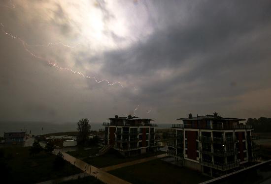 Fotos und Text: Thomas Nyfeler · Haben Sie das heute auch erlebt? Es war für einen kurzen Augenblick heute Nacht, als wenn die Welt unterginge. Schon gegen 4 Uhr morgens begann ein schlimmes Gewitter in Bad Oldesloe, Reinfeld, Hamberge und Lübeck zu überziehen. Dann wanderte es weiter nach Heiligenhafen am Steinwarder. Thomas Nyfeler sandte uns Fotos aus Heiligenhafen und er fotografierte gestern gegen 08.00 Uhr das Unwetter mit seinen Blitzen.