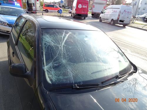 HL-Berliner Platz – Verkehrsunfall mit schwer verletzter RadfahrerinAm Mittwochmorgen (08.04.) kam es in Lübeck am Berliner Platz zu einem Unfall, bei dem sich eine Radfahrerin verletzte.Gegen 8:45 Uhr fuhr ein 56-jähriger Ostholsteiner mit seinem VW Golf von der Possehlstraße aus kommend in den Kreisverkehr Berliner Platz und wollte diesen in Richtung Moisling wieder verlassen. An der Ausfahrt Geniner Straße übersah er offensichtlich eine 49-jährige Radfahrerin.Die Lübeckerin kollidierte mit dem PKW, prallte erst auf die Frontscheibe des Golfes und fiel anschießend auf der Straße. Sie verletzte sich bei dem Unfall sehr schwer und wurde mit einem Rettungswagen in ein Lübecker Krankenhaus verbracht.