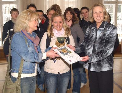 Franziska Kühbacher (16) gehört zu einer Gruppe von Schülerinnen und Schülern der Alten Stadtschule Lübeck, die sich im Rahmen eines Geschichtsprojektes unter der Leitung von Frau Lydia Möller über die Ereignisse an der ehemaligen innerdeutschen Grenze sowie über die Geschichte der heutigen Bundespolizei informierten.Die Leiterin der Bundespolizeiakademie und des Fachbereiches Bundespolizei der Fachhochschule des Bundes, Frau Ulrike Meuser, überreichte der Projektleiterin eine Urkunde sowie der 5000. Besucherin ein kleines Präsent.