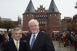 Fotos: TBF/Wolfgang Freywald – Heute wurde im Beisein von Ministerpräsident Peter Harry Carstensen im feierlichen Rahmen mit dem Chef des HansaParks, Peter Leicht, der 5. Bauabschnitt der “Hanse-Themenwelt” im “Hansa-Park in Sierksdorf eröffnet. Carstensen lobte den Erlebnispark als großen wirtschaftlichen Faktor und als einen Park, der für Jung und Alt viele erlebnisreiche Angebote bietet. Es war viel Prominenz anwesend, auch dabei, Lübecks stellv. Stadtpräsident, Peter Sünnenwold.Neuheiten 2012