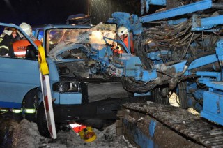 Fotos: TBF/Holger Kröger – Heute Nacht gegen 1:00 Uhr kam es in der Wesloer Strasse in Lübeck zu einem schweren Verkehrsunfall, bei dem ein Mann, wie durch ein Wunder, überlebte. Ein junger Mann, der mit seinem VW-Transporter T3 bei spiegelglatter Strasse unterwegs war, wollte die Behilfsbrücke an der Wesloer Strasse überqueren, kam von der Fahrbahn ab und prallte mit voller Wucht in eine große Baumaschine.Dabei bohrte sich ein Maschinenteil auf der Fahrerseite in den VW Transporter, drückte den Fahrer nach hinten und klemmte ihn tota ein. Die Feuerwehr brauchte ca. eine halbe Stunde, um den schwerverletzten Fahrer aus seinem Wagen zu befreien. Der T3 sollte wohl von dem Mann als Wohnmobil umgebaut werden. Dabei wurde die Blechwand hinter den Sitzen entfernt. Die rettete dem Verunfallten vermutlich das Leben, denn sonst hätte die schwere Baumaschine, den Fahrer gegen die Wand gedrückt.