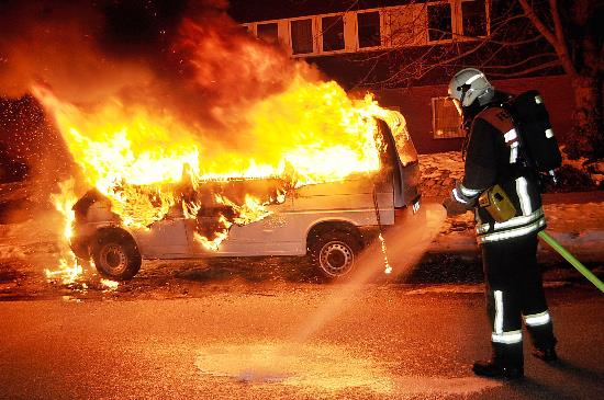 Text und Fotos: TBF/Holger Kröger – Lübeck: Gegen 19:00 Uhr befuhr ein VW-Bus für Behindertentransporte die Korvettenstrasse Richtung Ziegelstrasse. Vor dem EKZ in Buntekuh bemerkte der Fahrer des Behindertenbusses Rauch aus dem Motorraum steigen. Er fuhr rechts ran und schaute unter die Motorhaube. Dort schlugen ihm schon die Flammen entgegen und er versuchte diese noch mit Schnee vergeblich zu löschen.