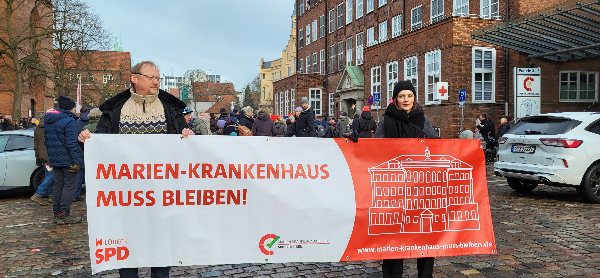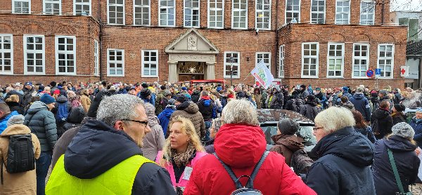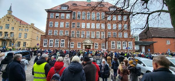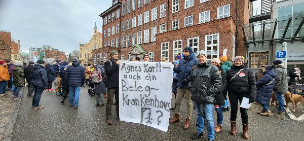 Text und Fotos: TBF/Holger Kröger · Nach der Polizei waren an der Demonstration für den Erhalt des Marien-Krankenhauses in der Innenstadt Lübecks. Der Standort wahrscheinlich soll wie berichtet auf das Uni-Gelände verlegt werden, darüber ist die Aufregung in der Hansestadt seit einer Woche groß. Viele Lübecker wurden im Marien-Krankenhaus geboren und haben eine emotionale Bindung zum Gebäude Parade. Viele lieben den familiären Betrieb in dem kleinen Krankenhaus. Doch nun machen immer neue Regelungen das Krankenhäuser anscheinend unwirtschaftlich.