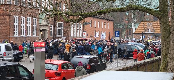 Die Demonstration wurde von der Lübecker SPD organisiert. Unter den Demonstranten waren auch SPD-Fraktionsvize Peter Reinhardt und der ehemalige langjährige Landtagsabgeordnete Wolfgang Baasch. Die Demo zog friedlich durch die Innenstadt zum Markt. Eine Ausnahme: Die Polizei mußte eine Strafanzeige wegen des Verstoßes gegen das Sprengstoffgesetz schreiben, denn ein Teilnehmer hatte bei der Auftaktkundgebung ein Bengalo gezündet.