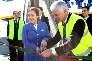 Lübeck, 2. April 2013 – Gut gebucht und fröhlich startete die Ryanair FR 6122 heute Morgen von Lübeck aus mit Ziel in die zweitgrößte Stadt Portugals. Zunächst verwöhnte Ilda Cara Linda Pica, Besitzerin des Lübecker Café Algarve, die Fluggäste im Abflugbereich des Flughafens mit portugiesischen Leckereien wie Natas und Portwein. Für musikalische Einstimmung sorgten drei begabte Studenten der Musikhochschule zu Lübeck: Paulo Ferreira, waschechter Portugiese am Fagott, Sergio Sánchez aus Spanien spielte Oboe und Gitarre und Linda Gulyas, deren einer Elternteil aus Ungarn stammt, bezauberte an der Klarinette. Von bester Seite zeigte sich auch das Lübecker Wetter, die Sonne strahlte trotz Kälte aufs Vorfeld während Airport-Chef Jürgen Friedel eine charmante Ryanair-Stewardess für das Bandschneiden bei der Eröffnungszeremonie gewann.