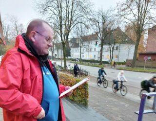 Radfahrer zu sensibilisieren. Mit der dunklen Jahreszeit verschlechtern sich die Sichtverhältnisse im Straßenverkehr erheblich: Nässe, Nebel und frühe Dämmerung erschweren das Erkennen anderer Verkehrsteilnehmer. Im Rahmen der Aktion dokumentierten die ACE-Ehrenamtlichen Wolfgang Wenzel, Rüdiger Kleinert mit dem ACE Regionalbeauftragten Rüdiger Rohlf an drei verschiedenen Tagen den Zustand der Fahrradbeleuchtung an mehreren Standorten in Lübeck – am Gustav-Radbruch-Platz, in der Kronsforder Allee sowie Ratzeburger Allee/Mönkhofer Weg.