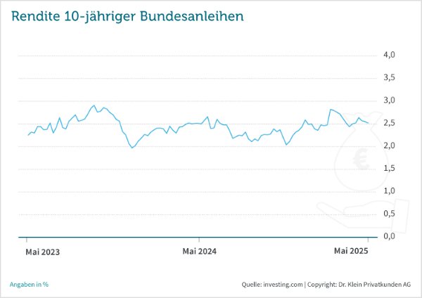Wie sensibel das Zinsumfeld allerdings auf handelspolitische Vorkommnisse reagiert, zeigte Ende Mai eine erneute Zoll-Eskapade von Donald Trump. Seine Ankündigung, Waren aus der EU ab dem 1. Juni mit Zöllen in Höhe von 50 Prozent zu belegen, sorgte wiederholt für Unruhe an der Börse. Folglich suchten Investoren nach sicheren Anlagen – die Nachfrage nach Anleihen stieg. „Die Baufinanzierungszinsen orientieren sich vor allem an der Rendite der 10-jährigen Bundesanleihe. Sie