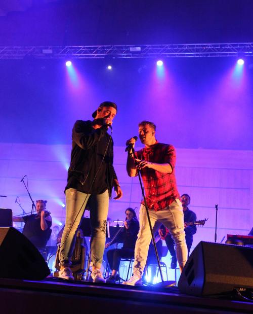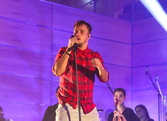 Fotos: Tom und Maria Nyfeler · Text: Maria Nyfeler · Lübeck – Der Eutiner Fußballer und Sänger Alexander Knappe begeisterte am Sonnabendabend ca. 900 Besucher in der Lübecker Musik- und Kongresshalle. Einen Abend der Extraklasse bot Knappe im Rahmen seiner „Musik an. Welt aus“ Tour zusammen mit dem Sinfonieorchester Europa und seinen Special Guests Joel Brandenstein, Jeden Tag Silvester und dem Gospelchor „Young Spirits“.