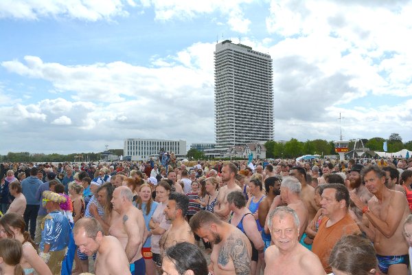 Text und Fotos: Barbara Engl · Anbaden in Travemünde war ein voller Erfolg und hat wirklich Spass gemacht bei 11 Grad Wassertemperatur und guter Laune ging es ins kalte Nass. Danach gab es ein T-Shirt eine Urkunde plus Schnaps oder Kakao und Schinken oder Käsebrot viele Menschen haben mitgemacht.Fotos: 1.) Der Strand in Travemünde mit den wartenden, 2.) Anbaden in Travemünde 3.) Influencer: Ali Alarm und Geschäftsführer der Tourist-Information Travemünde, Christian Martin Lukas.