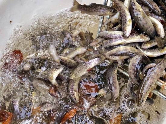 Angler besetzen Meerforellen in die Lübecker Kanaltrave