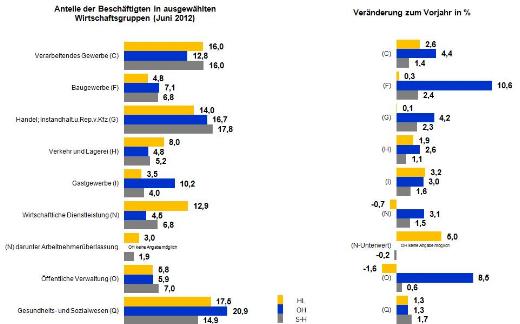 Die Zahl der sozialversicherungspflichtig Beschäftigten stieg im Vorjahresvergleich im ersten Halbjahr 2012 in der Hansestadt Lübeck auf 86.220 (+1.007 oder 1,2 Prozent). Die Entwicklung fiel etwas geringer als in Schleswig-Holstein (+1,8 Prozent) und im Bundesgebiet (+1,9 Prozent) aus.