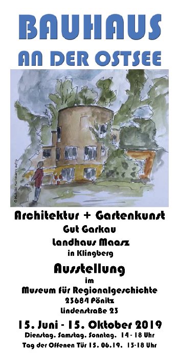 Daraus ist eine Ausstellung „Bauhaus an der Ostsee – Architektur + Gartenkunst“ entstanden, die unter der Schirmherrschaft des Landrats von Ostholstein, Reinhard Sager, steht und am Freitag, den 14. Juni 2019 im Museum für Regionalgeschichte in Pönitz eröffnet wird. Am Sonnabend, den