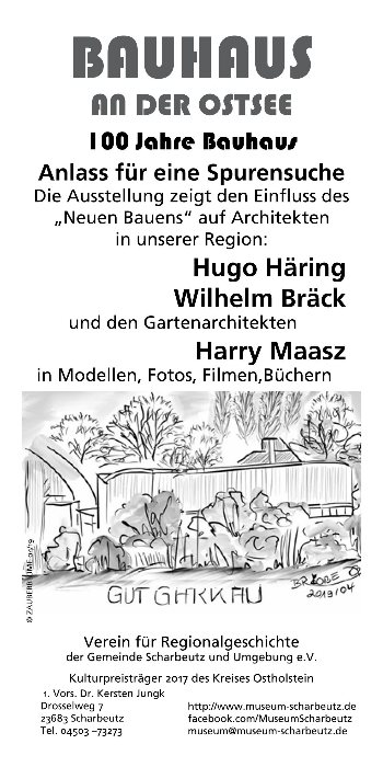 Ausstellung – „Bauhaus an der Ostsee – Architektur + Gartenkunst“ · Das 100-jährige Bauhaus-Jubiläum war für den Verein für Regionalgeschichte der Gemeinde Scharbeutz und Umgebung Anlass für eine Spurensuche: Gibt es in unserer Region Zeugnisse jener Zeit? Es fand sich in der Gemeinde Scharbeutz Einiges zum „Neuen Bauen“ Anfang des 20. Jahrhunderts.