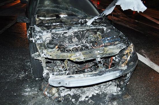 Straße Ecke Reepschlägerstraße im Motorbereich in Brand. Als die Feuerwehr eintraf stand der Motorbereich