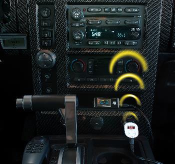 Per UKW-Funk macht der Stereo-Transmitter jedes Audiosignal einfach im Autoradio empfangbar. Dazu wird der Modulator lediglich an den Zigarettenanzuender oder eine andere 12V-Buchse im Pkw, Lkw oder Kleinbus angeschlossen. Dann nur noch das Klinkekabel am Player einstecken, passende UKW-Frequenz waehlen. Schon erklingen die MP3-Hits und der Sound der DVD-Filme wie ein Radiosender im Autoradio. Auch genial fuer die Audioausgabe von PDAs, portablen Fernsehern oder nachtraeglich eingebauten Navigationssystemen mit Klinkeausgang (3,5 mm). Damit der Transmitter nicht den Empfang des Lieblingssenders stoert, laesst sich seine Uebertragungsfrequenz per Knopfdruck einfach verstellen.