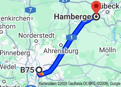 - über die B75 bis zur Baustelle nach der Ortsdurchfahrt Hamberge, Höhe Schulstraße – Ziegeleiweg.