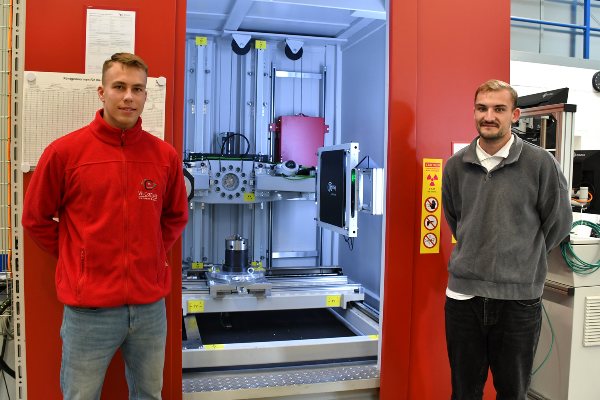 Foto:  Röntgeninspektionsanlage: Lennart Rohlf (r.) und Lasse Giese wirken maßgeblich am Bau von Röntgeninspektionsanlagen mit, die in der Industrie kritische Bauteile und Werkstoffe prüfen, um die Qualität zu sichern.