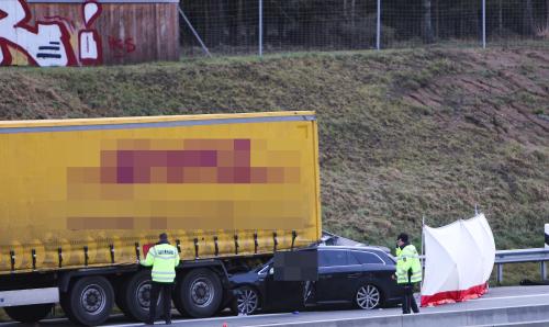 Ort: A7, Fahrtrichtung Norden, kurz vor der Ausfahrt Bad Bramstedt. Datum: 11.1.2020, gegen 7:45 Uhr, Fotos: Thomas Nyfeler · Text: Maria Nyfeler · Schwerer Verkehrsunfall auf A7 mit einem Toten – PKW unter LKW. Bad Bramstedt (Kreis Segeberg) – (Maria Nyfeler) Am Samstagmorgen ereignete sich auf der A7 ein schwerer Verkehrsunfall mit einem Toten.