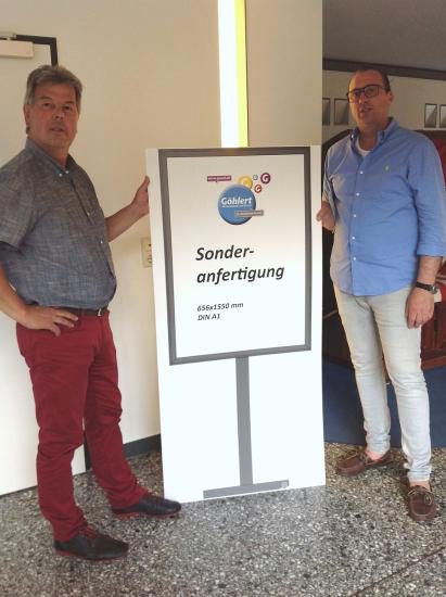 Bürgermeister Dr. Uwe Brinkmann eröffnete am 19. Juni 2019 eine kleine Muster-Ausstellung im Rathaus-Foyer. Damit erhalten die Gewerbetreibenden Anregungen für mögliche Anschaffungen.
