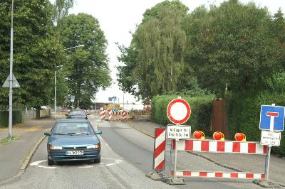 Sehr eng – bezüglich der zur Verfügung stehenden Baufläche – ist die Einmündung zur beziehungsweise die Ausfahrt von der Friedenstraße. Da aufgrund des beengten Platzes keine Ausweichmöglichkeit besteht, muss in der jetzt anlaufenden zweiten Bauphase die Ausfahrt aus der Friedenstraße gesperrt und saniert werden. Die Umleitung über Schwartauer Allee / Bei der Lohmühle ist ausgeschildert. Diese Bauphase II dauert bis zum 16. August 2006.