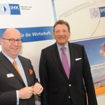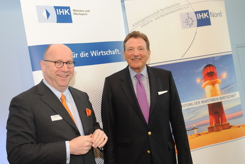 Auf dem Foto sind zu sehen (v.l.): Christoph Weiss, Präses der Handelskammer Bremen und Vorsitzender der IHK Nord – Dr. Eberhard Sasse, Präsident der IHK für München und Oberbayern – Das Copyright des Fotos liegt bei Andreas Gebert, München“
