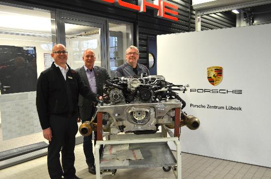 Travemünde. Hinzu kommen im Jahr circa 40 Meisterschüler und aktuell 8 Servicetechniker-Schüler. Jens Giese bedankte sich beim Porsche Zentrum und erklärte: „Wir freuen uns sehr, mit diesem hochmodernen Motor zukünftig in der übertrieblichen Unterweisung der Auszubilden arbeiten zu können. Wir sind uns sicher, dass diese großzügige Spende eine bemerkenswerte Bereicherung bei der Ausbildung in der Motorinstandsetzung sein wird.“
