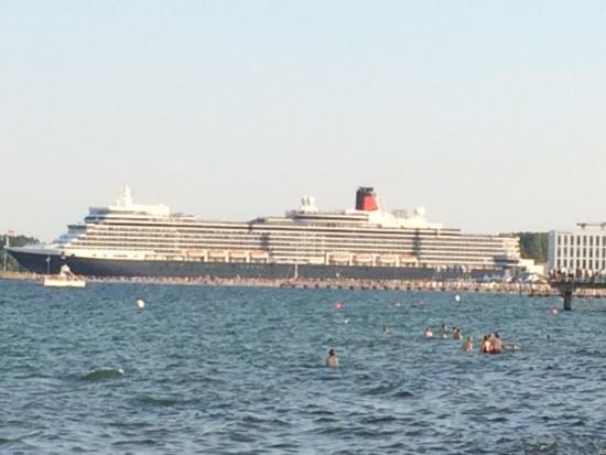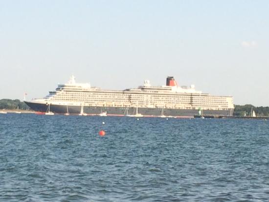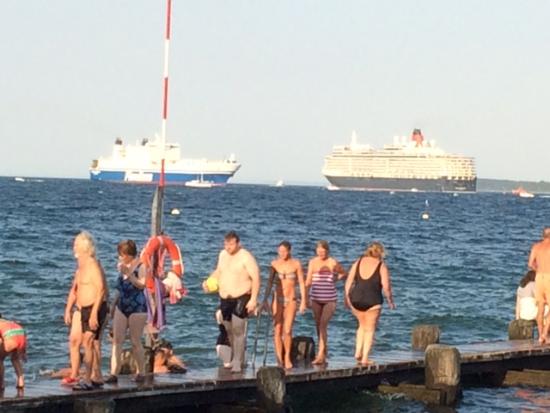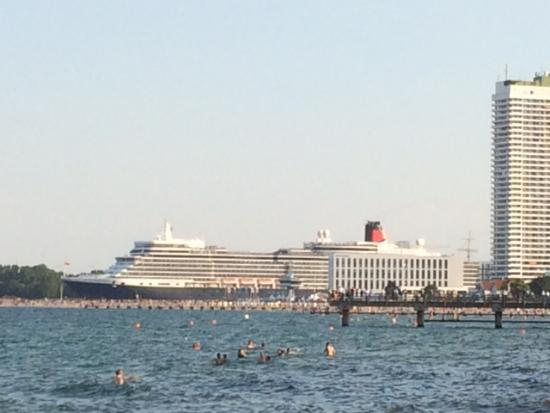 18.45 Uhr auf Höhe der Lotsenstation erschien, spielte die Band Rod Stewart’s Song „Sailing“ und brachte damit die Stimmung auf den Höhepunkt. Vor dieser emotionalen musikalischen Kulisse verabschiedeten die zehntausenden Zuschauer die vorbeifahrende Queen Elizabeth aus Travemünde auf ihrem Weg in Richtung Göteborg.