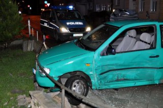 Text: Benjamin Helms (hanseatic news) – Fotos: TBF/Holger Kröger – Lübeck- Samstagabend kam es in der Meierstraße Ecke Schützenstraße zu einem schweren Kreuzungscrash. Der junge Fahrer eines VW Polo kam aus der Schützenstraße und wollte die Meierstraße überqueren. Dabei übersah er vermutlich einen herannahenden BMW der die Meierstraße in Richtung Hansestraße befuhr.Als der Polo ohne anzuhalten die Meierstraße überquert kann der Fahrer des BMW nicht mehr rechtzeitig bremsen und krachte in die Fahrerseite des Polo. Durch die hohe Wucht des Aufpralls schleudert der Polo über die Straße und durchbricht anschließend eine Gartenmauer.