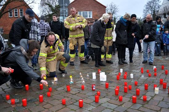 Ca. 150 Kerzen zum Gedenken an den vermißten Marco aus Lübeck-Schlutup