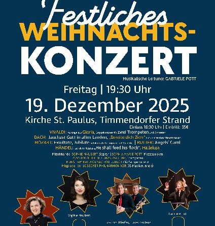 WeiterlesenAm Freitag, den 19. Dezember um 19:30 Uhr, lädt die katholische Kirche St. Paulus gemeinsam mit der Dirigentin Gabriele Pott und der Timmendorfer