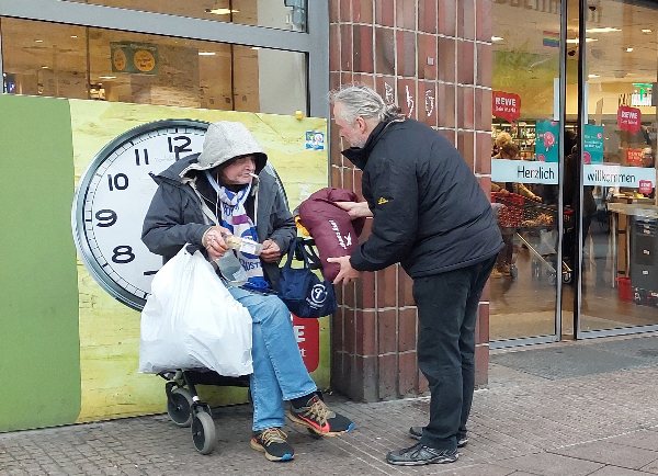 WeiterlesenFoto und Text: (TBF) Trotz Regen verteilten die Helfer der Fides Humanitas Stiftung am Sonnabend Sandwiches und Wasser aus dem