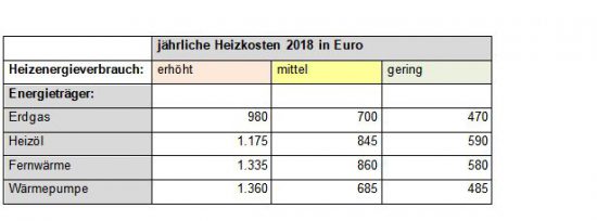 Durchschnittliche Heizkosten im Abrechnungsjahr 2018