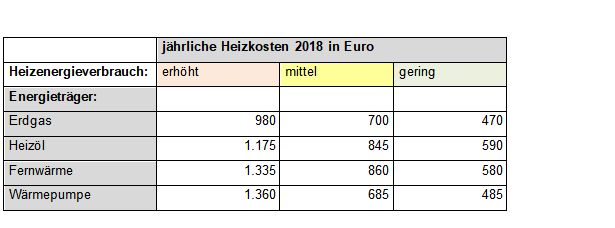 Durchschnittliche Heizkosten im Abrechnungsjahr 2018
