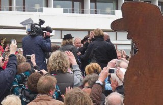 Foto: TBF/Harald Rothe (Montage: TBF) – Udo Lindenberg, der Altrocker, hat nun ein Denkmal. Unter dem Beifall zahlreicher Fans und Schaulustiger hat er am Freitag an der Strandpromenade von Timmendorfer Strand die tonnenschwere Skulptur enthüllt. „Leute, ich bin schwerst beeindruckt. Das ist supergeil gemacht“, meinte Udo gerührt.Das Denkmal steht in den Dünen hinter dem Maritim Seehotel, in dem Udo einst das Lied „Horizont“ geschrieben hat. Das Lied erklang dann auch zur Enthüllung – allerdings aus der Konserve, denn der Altrocker ließ sich nicht zu einem spontanen Ständchen hinreißen. Die Fans, die sich trotz des kühlen Wetters auf der Promenade drängten, waren dennoch begeistert.Die mehrere Tonnen schwere Skulptur des Koblenzer Künstlers Dieter Portugall besteht aus zwei Teilen: einem mehr als zwei Meter großen Abbild des Sängers und einer abstrakten Darstellung zum Thema Horizont. „Wir ehren mit diesem Denkmal einen ganz, ganz Großen, der Timmendorfer Strand seit vielen Jahren die Treue hält“, sagte der Tourismuschef des Ortes, Christian Jaletzke.