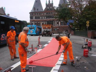 Text und Foto: TBF/Holger Kröger – Nun wurde von Seiten der Stadt Lübeck an der Ecke Holstenstrasse / Untertrave der Fahrradweg knallrot markiert, um die Sicherheit für die Fahrradfahrer zu erhöhen. Die ist eine löbliche Vorsorgemaßnahme, die dafür sorge tragen dürfte, daß hoffentlich weniger Fahrradunfälle an diesem neuralgischen Punkt geschehen werden.