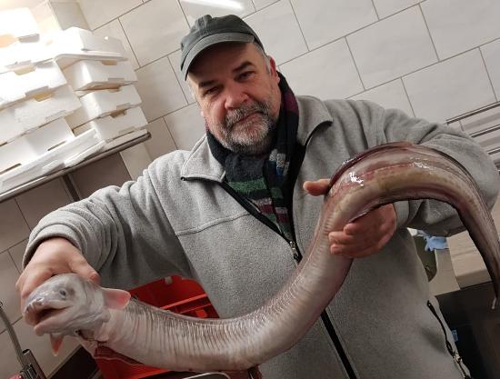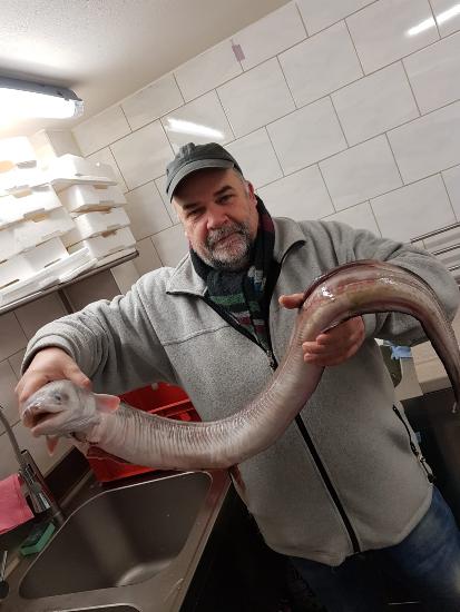 In der Dorfstraße Ecke Schulstraße is fix wat los.Extra für diese Weihnachtsveranstaltung hat Didi einen 4,3 Kg schweren Aal aus Norwegen/Nordatlantik anliefern lassen und ihn am Freitag zart geräuchert. Auf dem Weihnachtsmarkt wird der Aal filetiert und portionsweise in leckeren Brötchen verkauft.