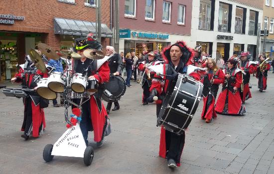 Es begann das Ganze mit ,,Lübeck Rockt“, am Samstag den 1. Oktober ab 11 Uhr in Lübecks Innenstadt. Dort teilten sich die Guggen- und Schalmeienvereine auf, spielten an verschiedenen Standorten, auf dem Rathausmarkt, den Schrangen, Breite Straße/ bei Telekom, Koberg, Sandstraße und an der Obertrave. Zu einem großen Finale am Holstentor trafen sich alle um 14 Uhr für ein spektakuläres „Monster“- Konzert.