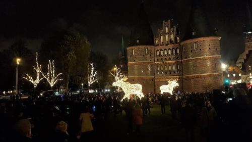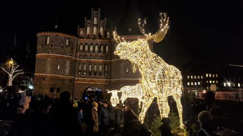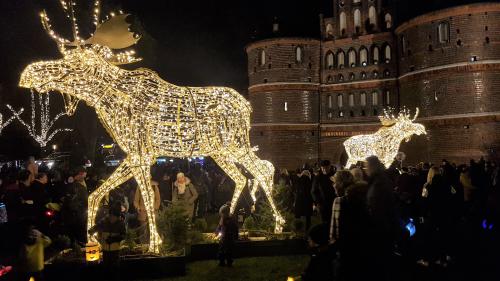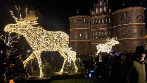 Die Weihnachtselche sind beim „Adventsleuchten“ in Lübeck dabei