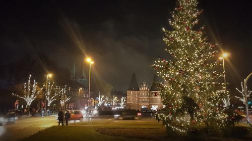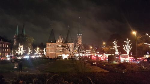 Die Weihnachtselche sind beim „Adventsleuchten“ in Lübeck dabei. Die #TRelche bringen das Licht in die „Weihnachtsstadt des Nordens“. Fotos: TBF/Holger Kröger · +++ Lübeck. Hohoho, die Weihnachtselche kommen! Über 10.000 LED Lichter schmücken die drei Elche Linus, Kalli und Lumi, die von der Travemünder Strandpromenade zum Holstentor ziehen, um pünktlich zum Adventsleuchten am 27. November das Licht aus dem hohen Norden in die „Weihnachtsstadt des Nordens“ zu bringen. Sie bleiben bis zum Tag der Heiligen Drei Könige am 6. Januar in der Stadt und kehren dann nach Travemünde zurück.Der Lübecker Weihnachtsmarkt ist als Reiseziel in ganz Skandinavien beliebt und so wundert es nicht, wenn auch die dreiköpfige Elchfamilie, die sich zurzeit illuminativ in Travemünde aufhält, neugierig geworden ist und Lübeck in der Vorweihnachtszeit besuchen möchte. Kurzentschlossen werden sich die drei bis zu 5 Meter großen Elche zu Beginn des Weihnachtsmarktes auf den Weg nachwird auch der Countdown für das Adventsleuchten zur offiziellen Eröffnung der „Weihnachtsstadt des Nordens“ – sprich das Einschalten der öffentlichen Weihnachtsbeleuchtung in der Innenstadt – am Mittwoch, 27. November, um ca. 17.25 Uhr erstmalig vor dem Holstentor in Gesellschaft der Elche stattfinden.