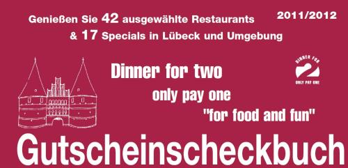 Dinner for two – only pay one – “ for food and fun “ – Das Gutscheinscheckbuch Lübeck 2011 – 2012 – 2 x essen 1 x bezahlen